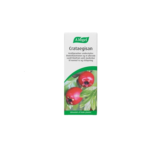 A.Vogel Crataegisan er et kosttilskud med udtræk af friske hvidtjørnebær (Crataegus oxyacantha L. og Crataegus monogyna Jacq.)