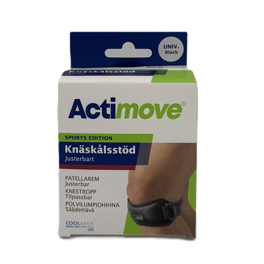 Actimove Sports Edition patellarem sikrer komfort under sport. Knæremmen giver smertelindring og bliver siddende under aktivitet. Det målrettede EVA-indlæg giver tryk på knæskallen for effektiv smertelindring, mens medicinsk kompression og balanceret varme støtter rehabilitering. Det perforerede og hurtigtørrende materiale med COOLMAX® AIR-teknologi sikrer komfort og åndbarhed – helt uden neopren eller naturgummilateks.