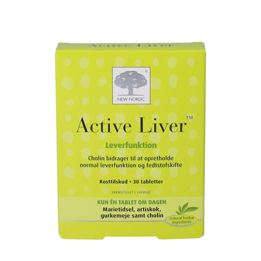 Active Liver er et kosttilskud med urteekstrakt af marietidsel, artiskok, gurkemeje og sort peber samt næringsstoffet cholin.
