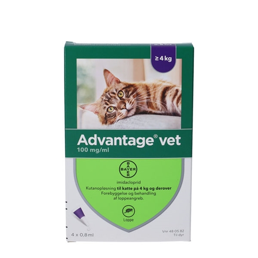 Advantage vet. er en opløsning, der anvendes til forebyggelse og bekæmpelse af loppeangreb hos hunde og katte.