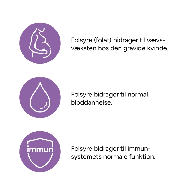 Folsyre bidrager til normal vævsvækst hos gravide.