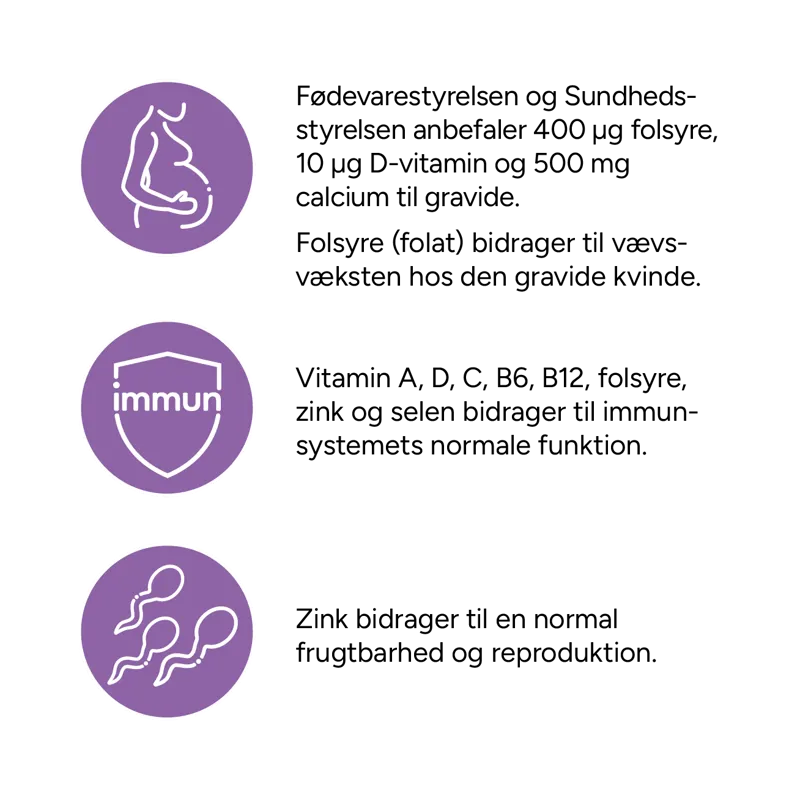 Apovit Gravid multi er et kosttilskud, der dækker behovet for vitaminer og mineraler hos gravide og kvinder der planlægger graviditet.