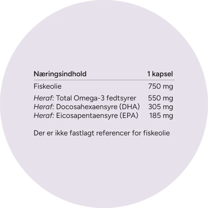 RI (anbefalet daglig dosis) er ikke fastlagt for omega-fedtsyrer.
