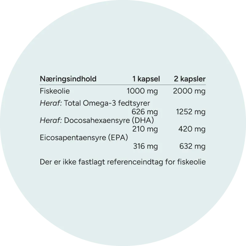 * Den gavnlige effekt opnås ved et dagligt indtag på i alt 250 mg EPA og DHA, svarende til 1 kapsel.