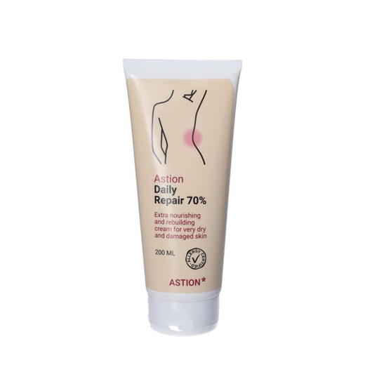 Astion Daily Repair 70 % er en kløestillende creme. Den lindrer kløe og irritation ved tør eller meget tør hud og kan med fordel bruges ved eksem og vintertør hud.