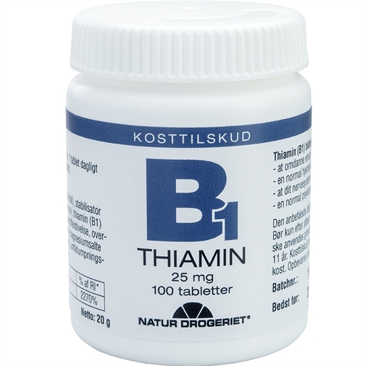 Hver tablet indeholder 25 mg B1-vitamin i form af Thiaminmononitrat.