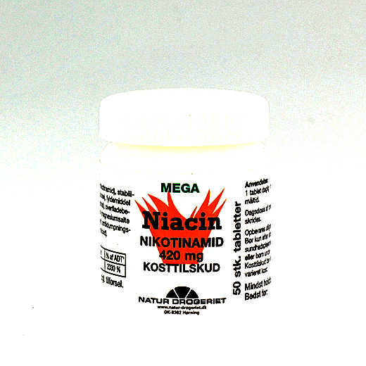Mega Niacin er et kosttilskud indeholdende B3-vitamin (Niacin Nicotinamid).