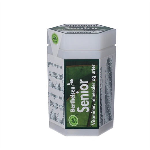 Berthelsen Senior Tabletter er et vegansk multivitamin- og mineralpræparat med urter.