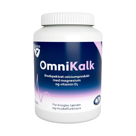 Biosym OmniKalk er et kosttilskud med letoptageligt calcium, magnesium og D3-vitamin.