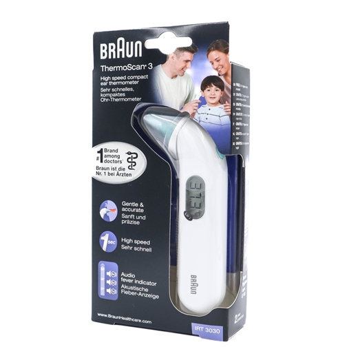 Braun ThermoScan 3. Pålideligt og brugervenligt øretermometer. Hurtig og præcis måling på bare 1 sekund.