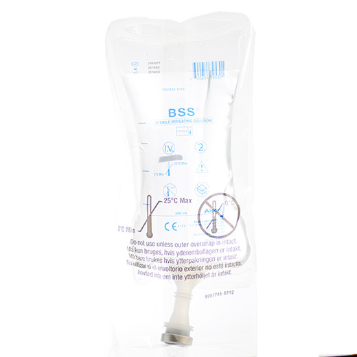 BSS Balanced Salt Solution er en steril, fysiologisk og isotonisk skyllevæske i 500 ml plastpose med gummiprop.