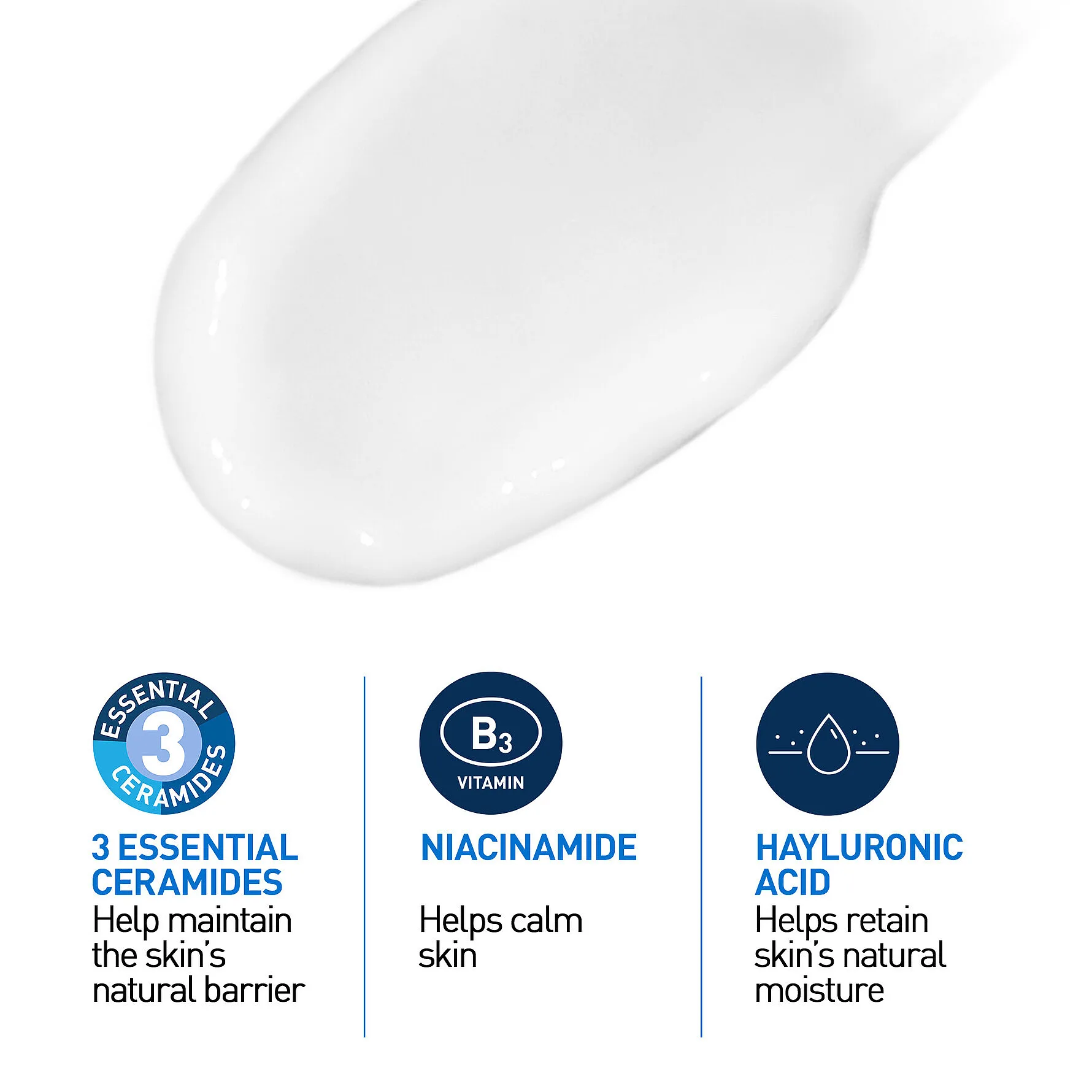 Aqua, Glycerin, Caprylic Capric Triglyceride, Niacinamide, Cetearyl Alcohol, Potassium Phosphate, Ceramide NP, Ceramide AP, Ceramide EOP, Carbomer, Dimethicone, Ceteareth-20, Behentrimonium Methosulfate, Sodium Lauroyl Lactylate, Sodium Hyaluronate, Cholesterol, Phenoxyethanol, Disodium EDTA, Dipotassium Phosphate, Caprylyl Glycol, Phytosphingosine, Xanthan Gum, Polyglyceryl-3 Diisostearate, Ethylhexylglycerin.