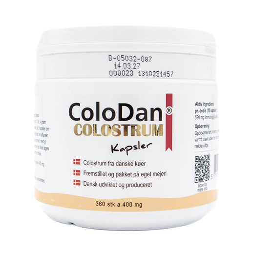 ColoDan Colostrum kapsler indeholder colostrum (råmælk), som er kendt for dets høje indhold af næringsstoffer og bioaktive proteiner, der fra naturen side er tiltænkt nyfødte pattedyr til at fremme vækst og modning af fordøjelsessystemet samt sikre en tilstrækkelig ”startpakke” til immunforsvaret.
