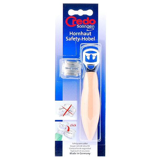 Credo sikkerheds hudhøvl fjerner selv meget hård hud på fødder og hæle, og efterlader dem bløde og glatte.