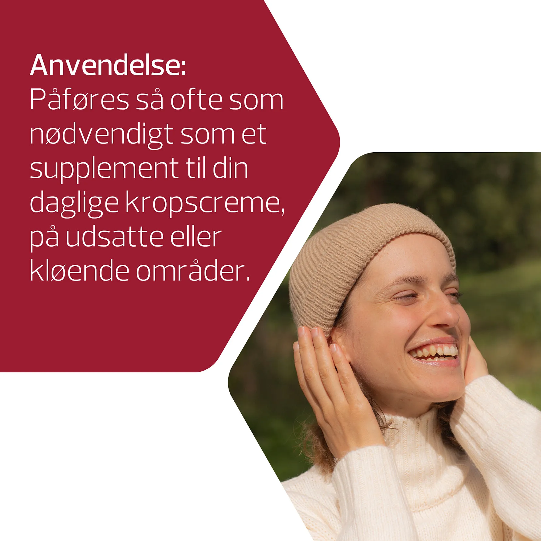 Kombinationen af fugt og fedt i Decubal anti-itch cream er med til at holde huden hel og styrker hudbarrieren.