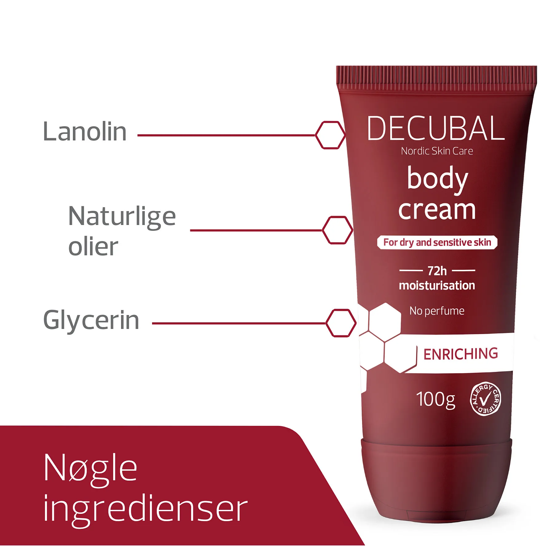 Decubal Body Cream er en nærende og fugtgivende creme, der er specielt udviklet til tør hud.