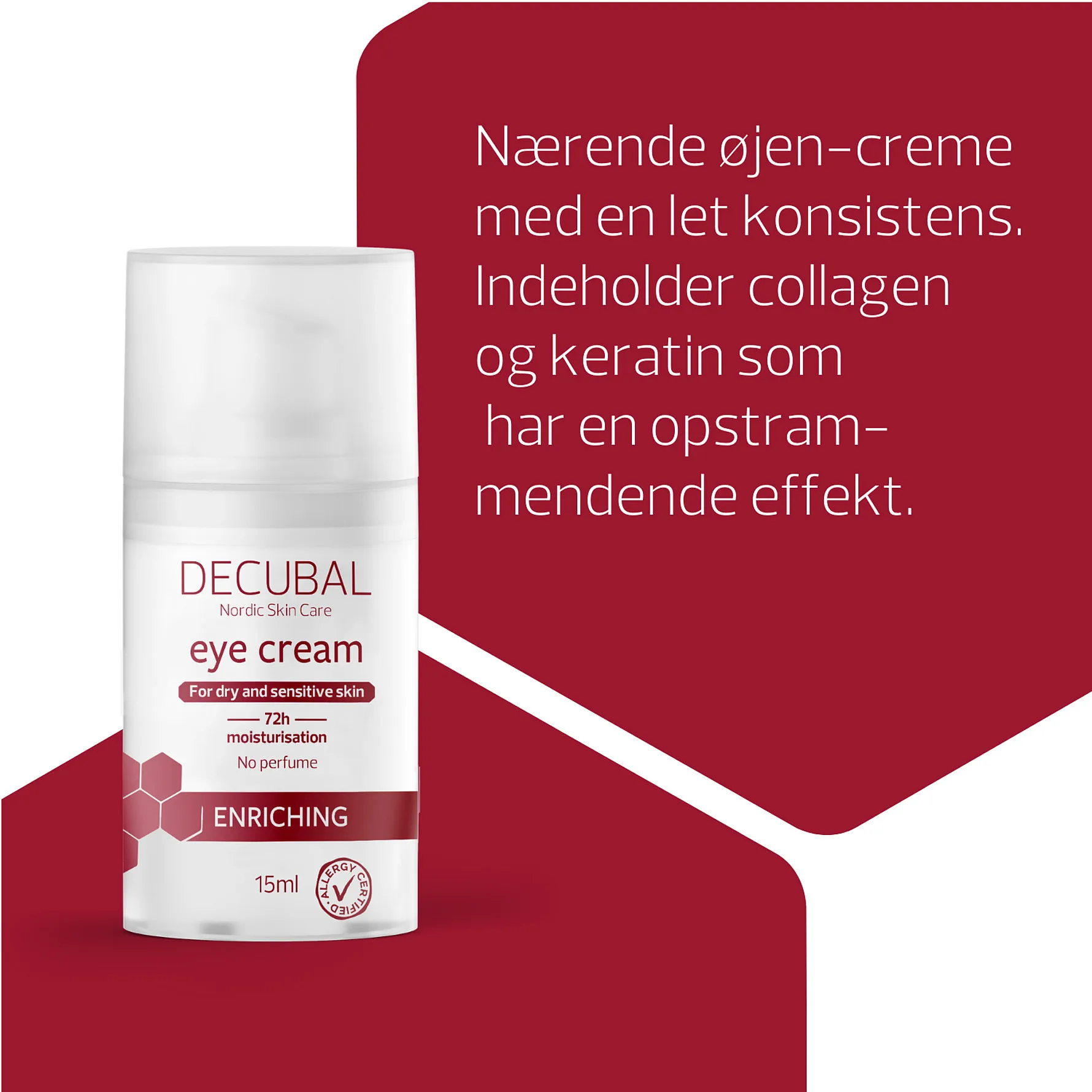 Herudover indeholder Decubal Eye Cream antioxidanten vitamin E, som beskytter og nærer, samt mandelolie og sheasmør, der plejer og blødgør huden.
