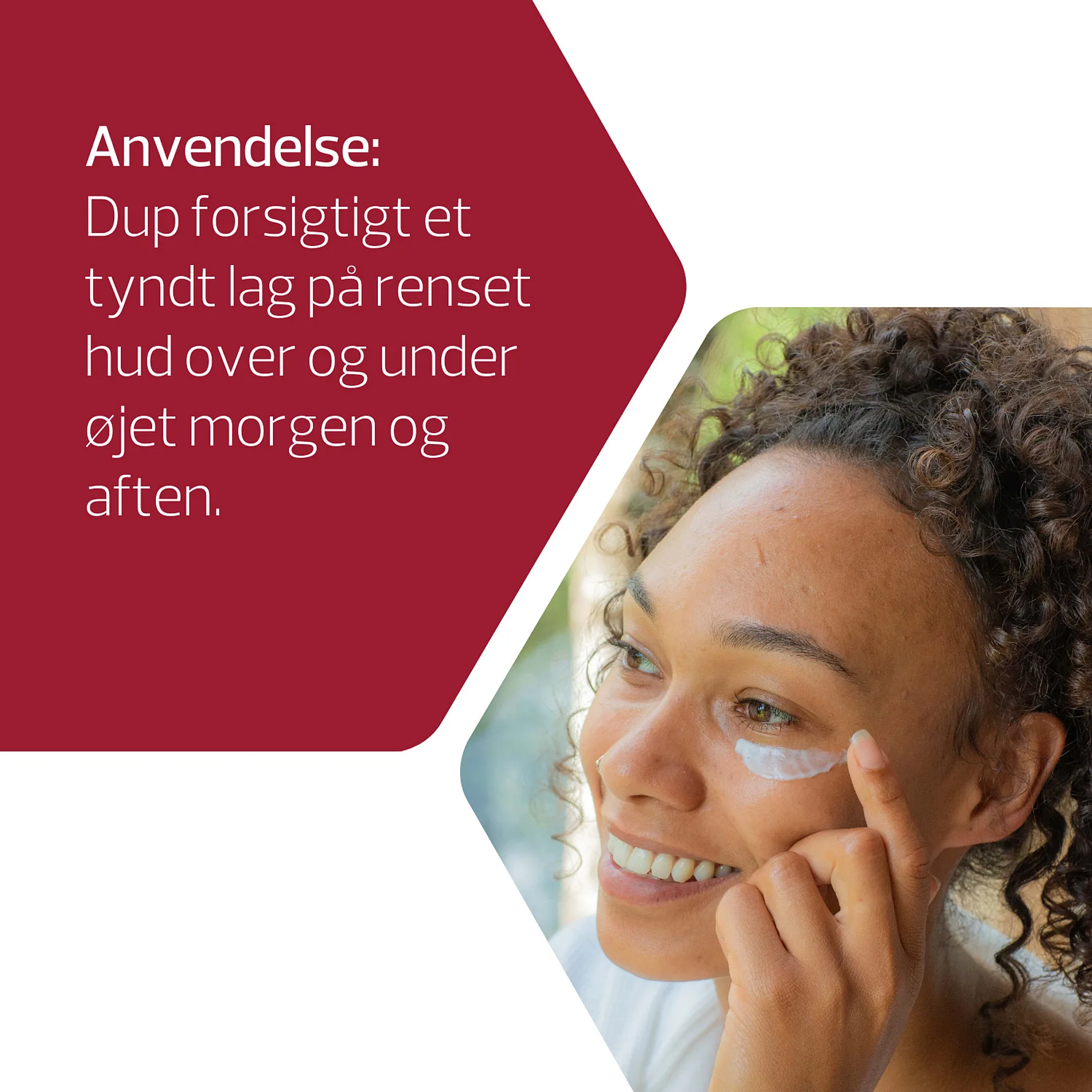 Øjencremen indeholder blandt andet ceramider, kollagen og hyaluronsyre, der opstrammer og fugter huden.