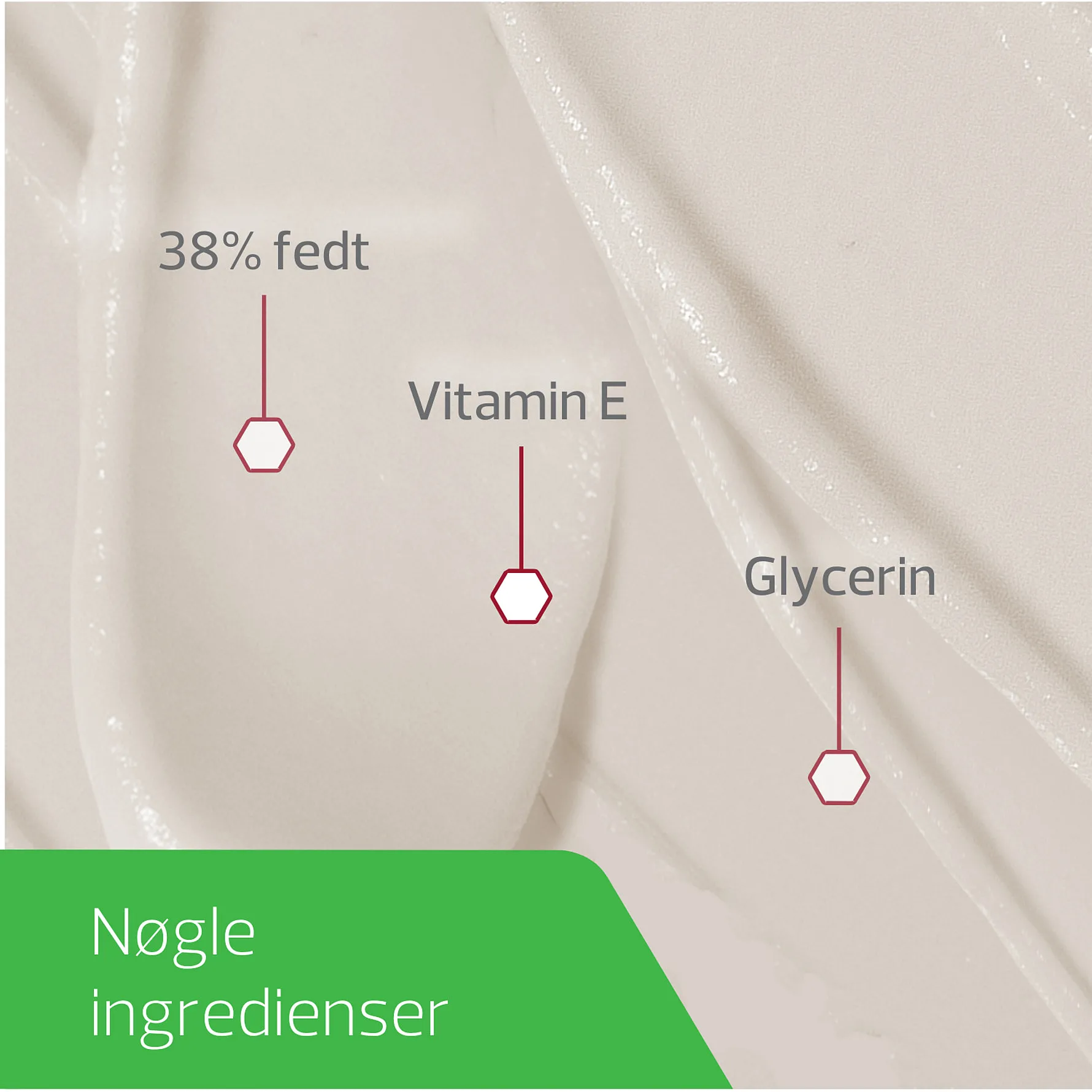 Cremen indeholder blandt andet glycerin, som beskytter huden mod fugttab.