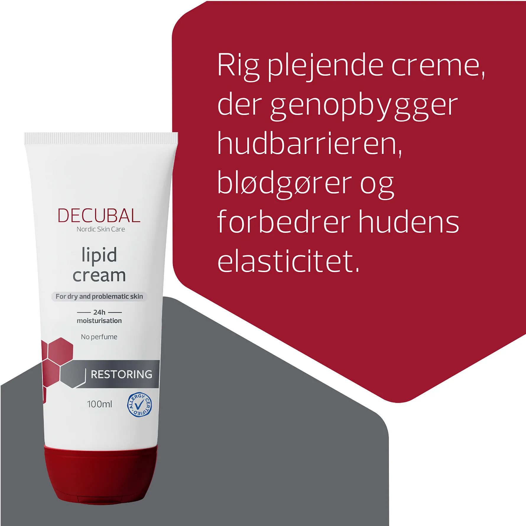 Decubal Lipid Cream er en ekstra nærende og fugtgivende creme med højt fedtindhold.