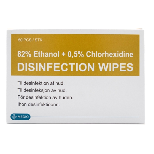 Servietterne indeholder 82 % ethanol og 0,5 % klorhexidin.