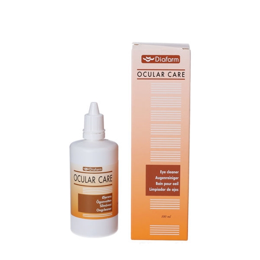 Diafarm Ocular Care Øjerens anvendes til dyr, når der er skorper og snavs ved øjnene.