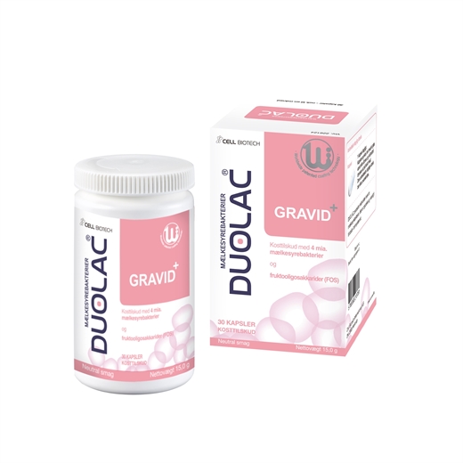 Duolac Gravid+ er et kosttilskud med mælkesyrebakterier til dig, der er gravid eller ammende.