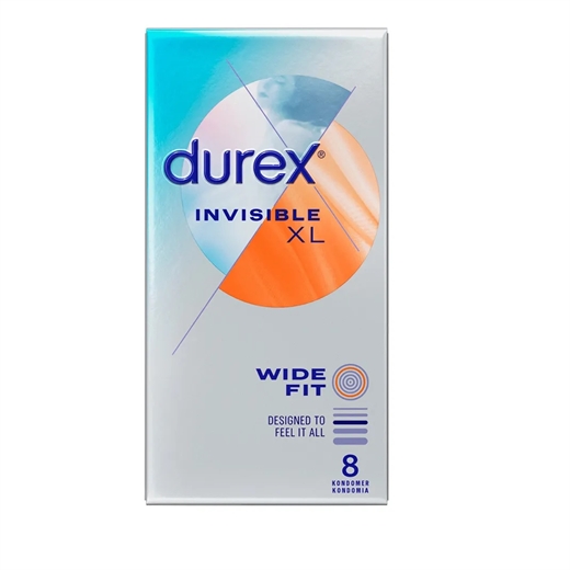 Oplev friheden og den fulde følelse med Durex Invisible Extra Large kondomer.