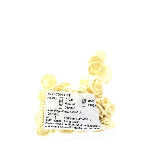 Usterile pudderfri latex eksplorationshætter / fingertutter i naturgummi, til beskyttelse af enkelte fingre.