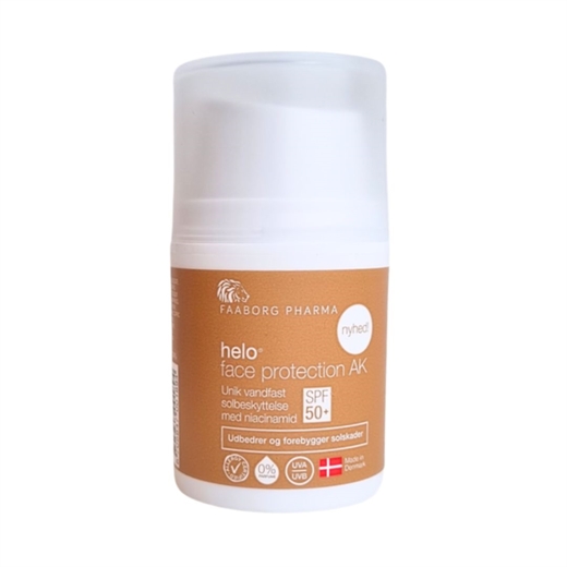 Faaborg helo face protection AK er en vandfast solbeskyttelsescreme med meget høj solbeskyttelse (SPF 50+) og reparerende egenskaber.