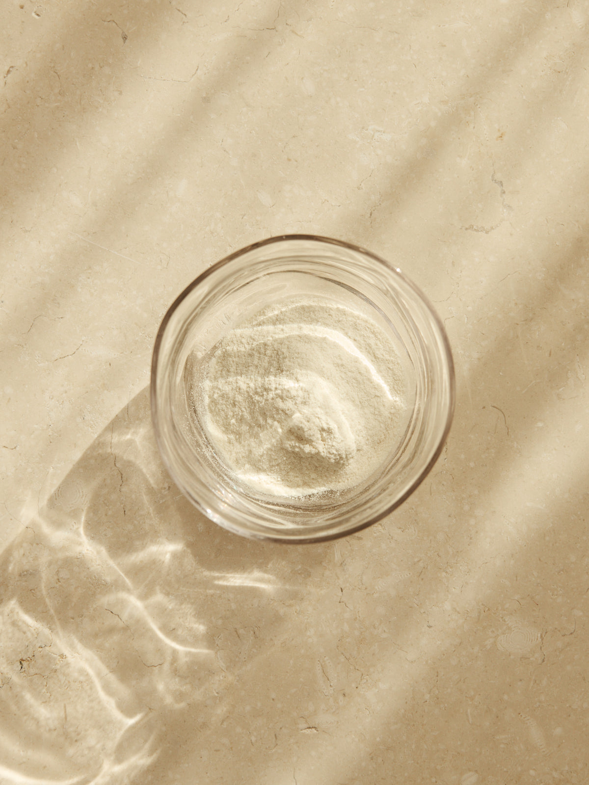 Fx 2 skefulde 1 gang dagligt den første måned i 3-4 dL væske,