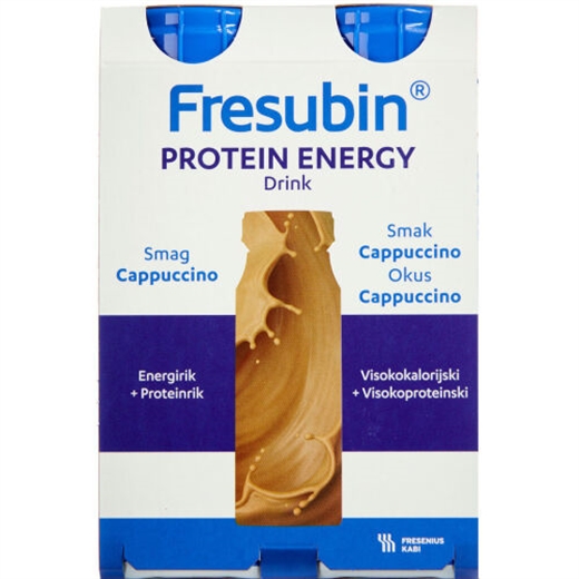 Fresubin Protein Energy Cappuccino Drink er en energirig (1,5 kcal/ml) og proteinrig ernæringsdrik.