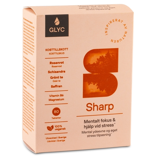 GLYC Sharp indeholder hele 4 adaptogener og urter, der booster hjernen og hjælper med at modstå stress og bevare dit overblik og din mentale ydeevne.