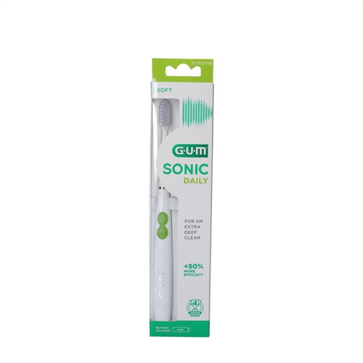 GUM Sonic Daily (4100) er en elektrisk tandbørste, der anvender sonisk børsteteknik med vibrationer, så man får sundere tænder og tandkød.