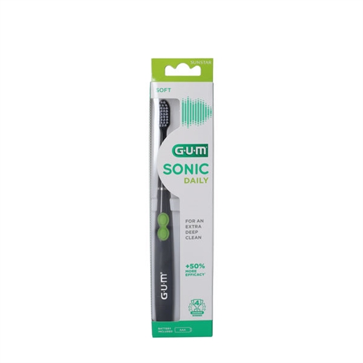 GUM Sonic Daily (4100) er en elektrisk tandbørste, der anvender sonisk børsteteknik med vibrationer, så man får sundere tænder og tandkød.