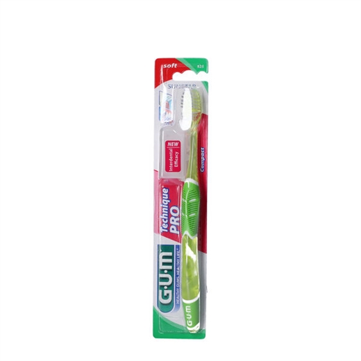 GUM Technique Pro (nr. 525) er en blød tandbørste med koniske børstestrå i flere længder for bedre rengøring mellem tænderne og ved tandkødskanten.