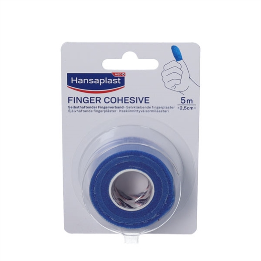 Hansaplast Finger Cohesive plaster er en selvklæbende fingerbandage, der kan anvendes til fiksering af sårpuder.