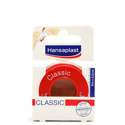 Hansaplast Classic Fikseringstape er en førstehjælpstape i stof.