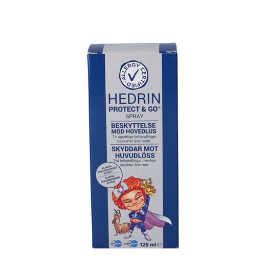 Hedrin® Protect & Go Spray er en spray, som beskytter imod lus. Sprayen kan bruges som forebyggende behandling, hvis du gerne vil undgå at få lus. Sprayen har klinisk dokumenteret effekt og dræber effektivt lus, når de kommer i kontakt med håret – det gør den ved at ætse lusenes ben. Hedrin® Protect & Go Spray plejer håret og modvirker at det filtrer og gør håret nemmere at kæmme, hvis du skal tjekke for lus. Sprayen er ideel som en forebyggende behandling mod lus, f.eks. i forbindelse med sociale begivenheder såsom børnefødselsdage eller overnatninger. Det kan også være, at der igen er en meddelelse om lus på aula og du ønsker, at beskytte barnet mod lus, inden det bliver smittet.