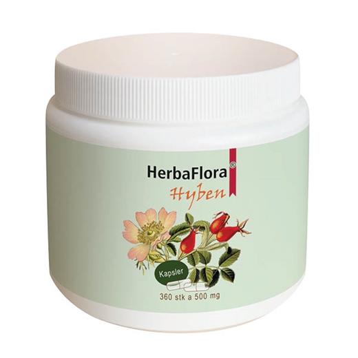 Hver kapsel indeholder 500 mg hybenpulver.