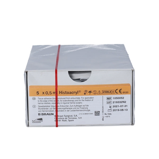 Histoacryl er en steril, blå vævslim der består af monometric N-butyl-2-cyanocrylat.