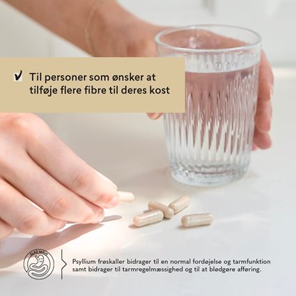 Psyllium frøskaller bidrager til en normal fordøjelse og tarmfunktion samt bidrager til tarmregelmæssighed og til at blødgøre afføring.