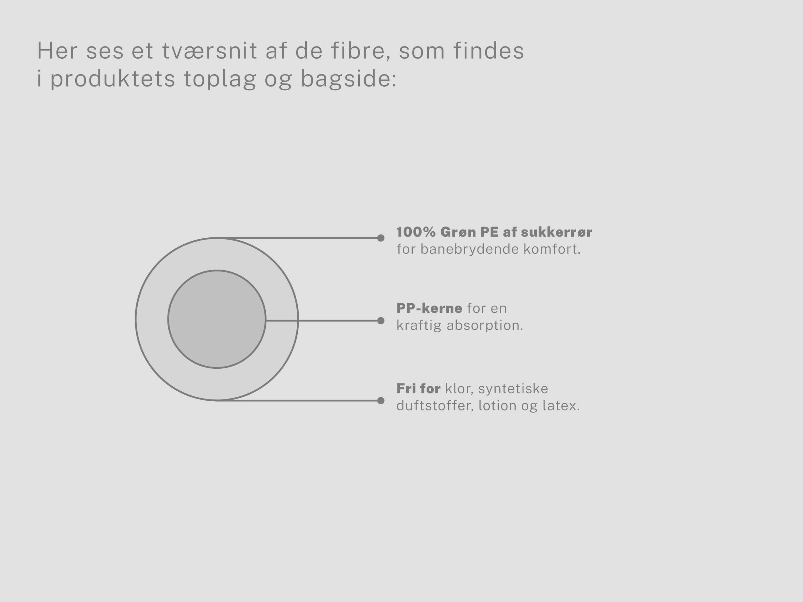 Buksebleerne indeholder hverken klor, syntetiske duftstoffer, lotion eller latex. Vi ønsker at give vores brugere en ren og skånsom oplevelse, samtidig med at vi minimerer potentielle gener.