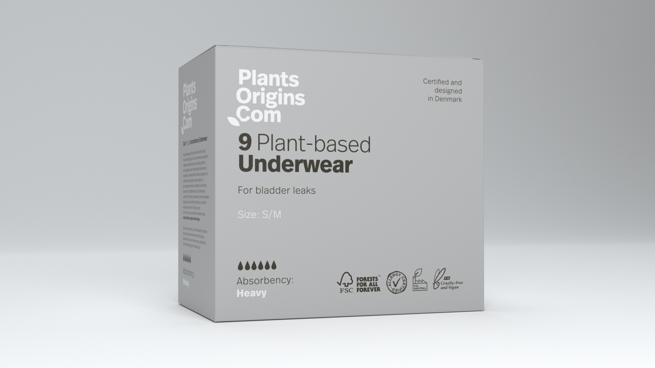 PlantsOrigins Inkontinens buksebleer er nøje fremstillet med fokus på de bedste indholdsstoffer og bæredygtighed.