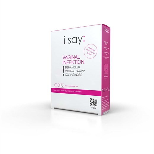 i say: Vaginal infektion vaginaltabletter er et medicinsk udstyr til selvbehandling af vaginal svamp og bakteriel vaginose samt ubehag som udflåd, kløe, brændende fornemmelse og lugt.