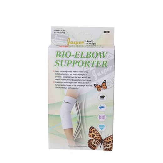 Jasper Bio Albuebandage er et elastisk støttebind, som stabiliserer og støtter albuen.