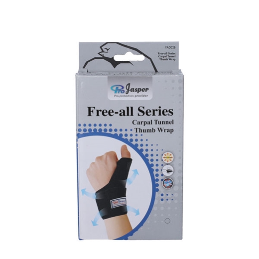 Jasper Tommelstøtte er en neopren bandage, der kan anvendes til alle typer tommelfingerskader, herunder karpaltunnelsyndrom.