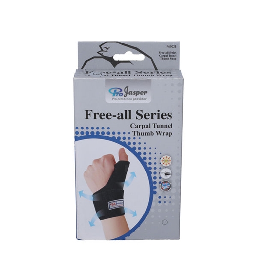 Jasper Tommelstøtte er en neopren bandage, der kan anvendes til alle typer tommelfingerskader, herunder karpaltunnelsyndrom.