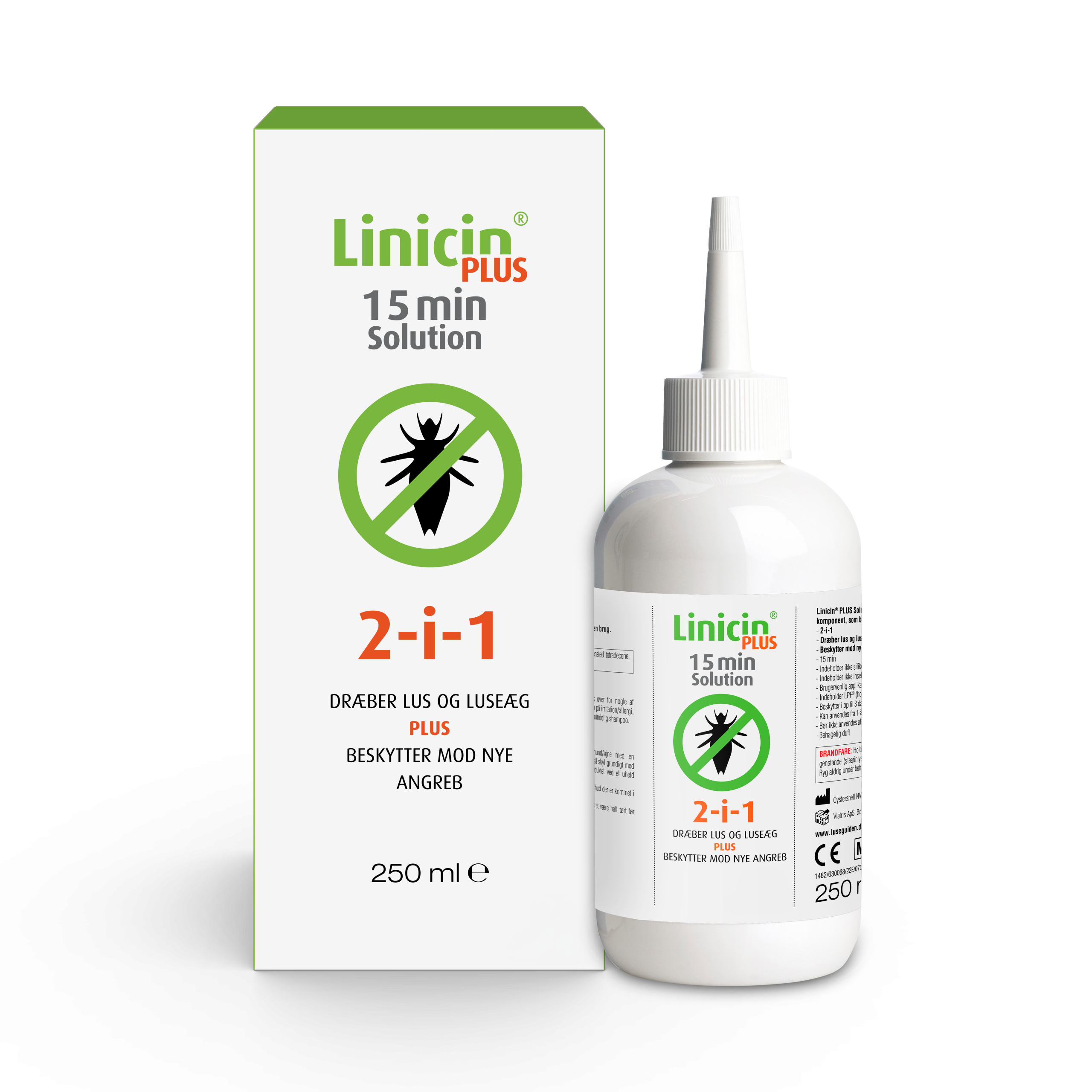 Linicin Plus 15 min Solution er et lusemiddel med dobbeltvirkende effekt.