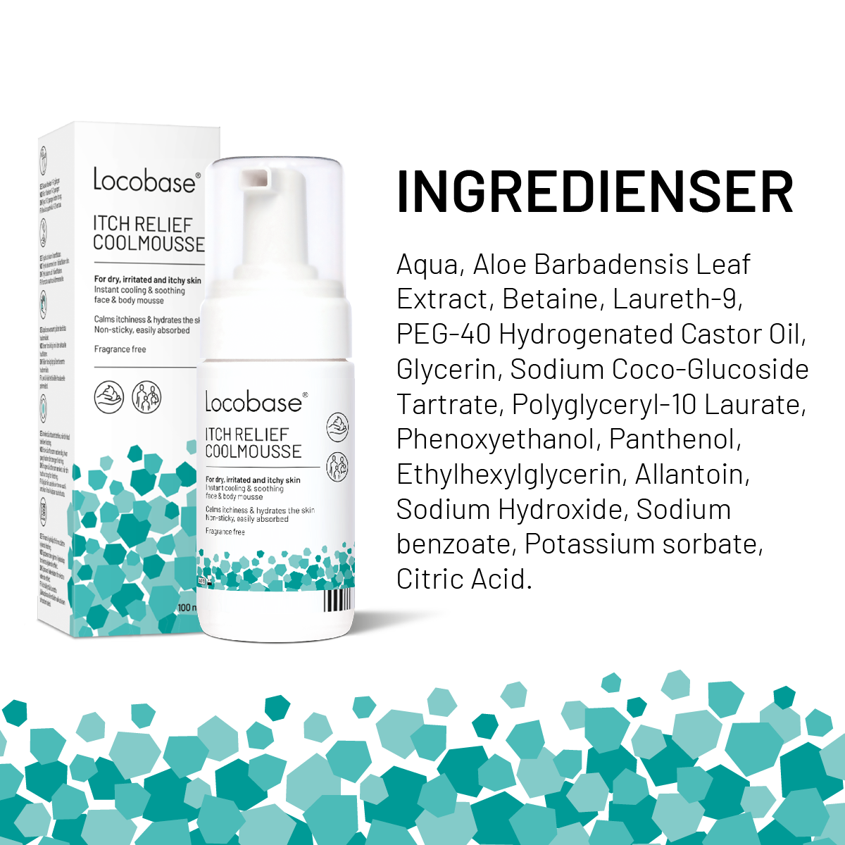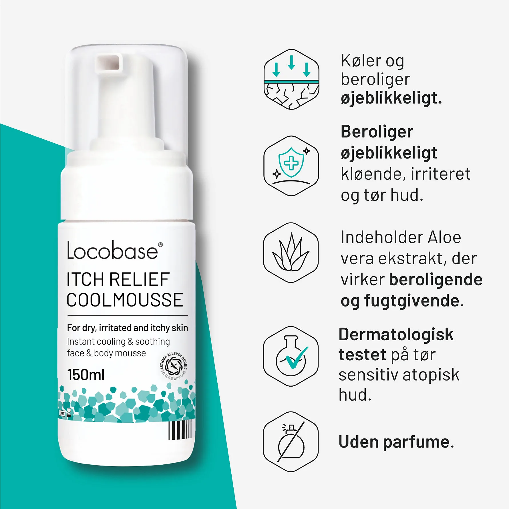 Locobase Itch Relief Mousse er en kløestillende og fugtgivende mousse til tør, irriteret og kløende hud.